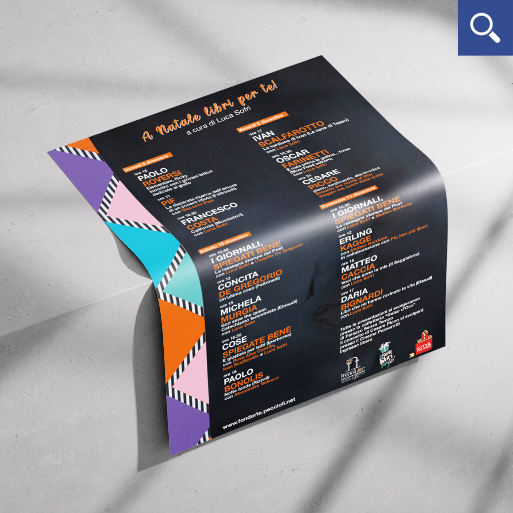 Con il sostegno del Comune di Peccioli e della Fondazione Peccioliper, a cavallo dell’8 dicembre viene allestito un temporary store con librerie del territorio dove poter acquistare libri e dove, dal 2021, hanno luogo anche una serie di presentazioni a cura di Luca Sofri.
